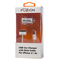 Tech Fuzion – Car Charger 12v for Iphone 4/4s + Spiral Cable White