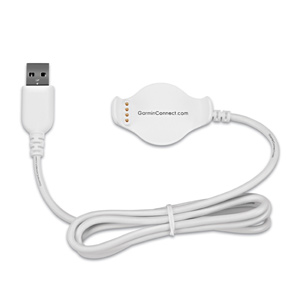 Conclua 2 tarefas com 1 cabo utilizando o nosso suporte de carregamento/dados. Ligue o cabo à porta USB do seu computador para recarregar o Forerunner 620 e para transferir dados para/do seu computador. Também é possível emparelhar este cabo com um adaptador CA opcional (vendido em separado).