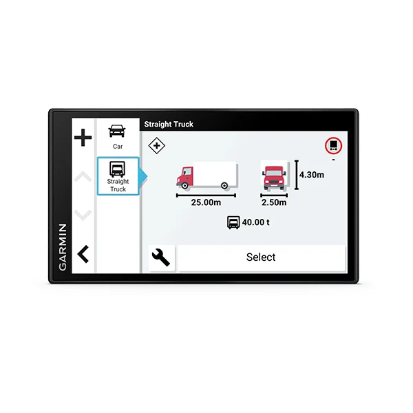 Este equipamento de navegação por satélite de 6″ inclui rotas personalizadas1 com base no tamanho e no peso do seu camião, sugestões estratégicas para abastecimento e pausas e planeamento de chegadas inovador.